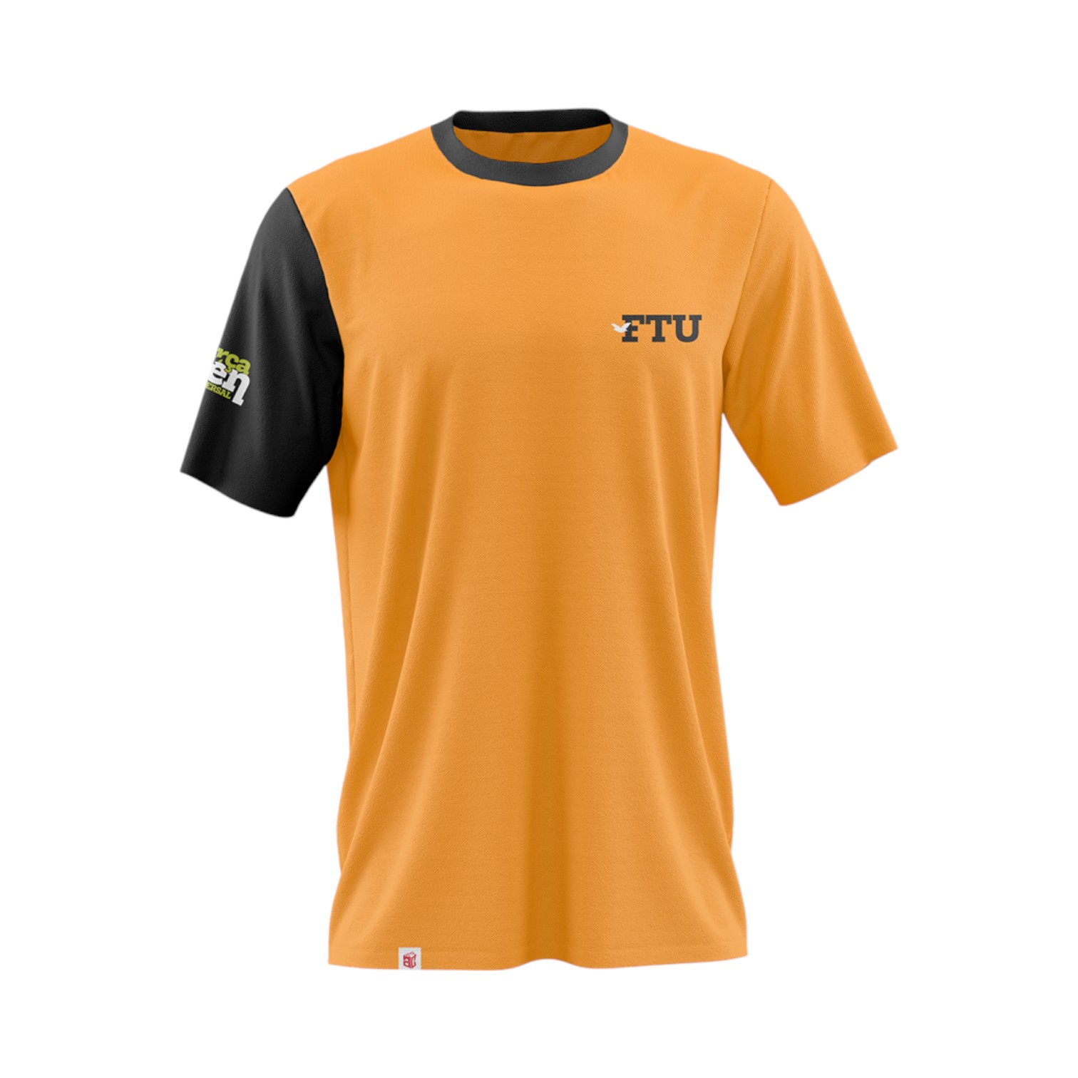 - Com estampa em silk na frente, em uma manga e nas costas;